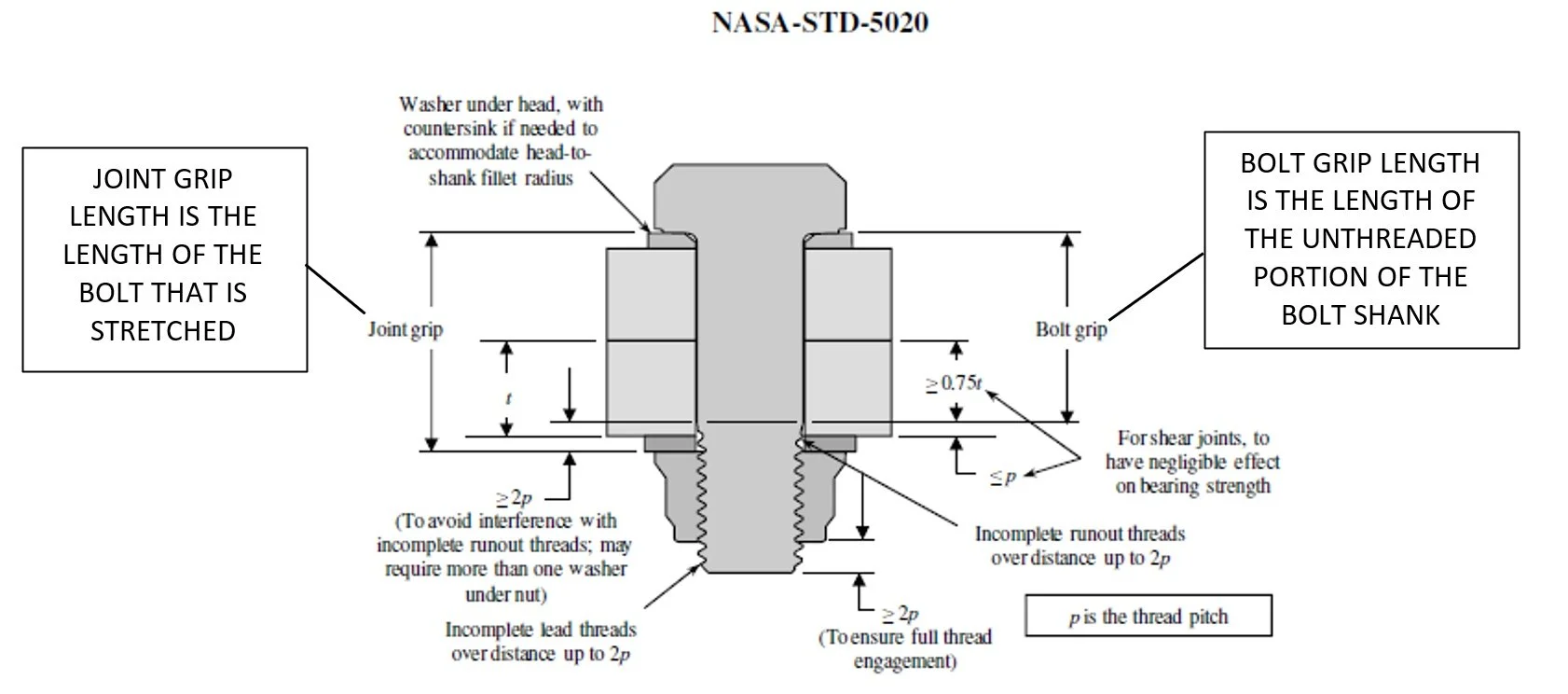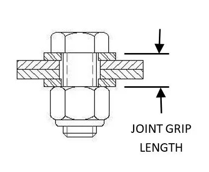 FIGURE #4 – TYPICAL BOLTED JOINT SECTION SHOWING GRIP LENGTH DEFINITIONS. SOURCE - NASA STD-5020