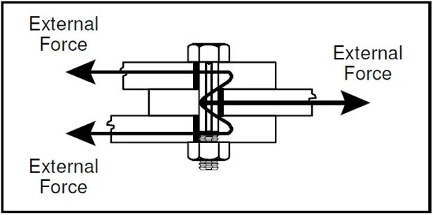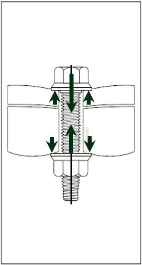 Once a fastener is tightened to the desired clamp load, we want the clamp load to be maintained. However, once tightened there are few, if any conditions, that will increase the clamp load, but there are many that can lower it. The fastener acts as a spring in tension. There is a linear relationship between the clamp load the bolt provides and the length that the bolt shank stretches from the tensile load developed during tightening. Any subsequent loss in bolt stretch will result in a corresponding reduction in clamp load.
