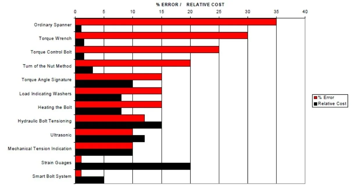 FIGURE #22 - ACCURACY AND COST OF VARIOUS TIGHTENING METHODS. SOURCE - S. FERNANDO / AJAX TECH CENTER
